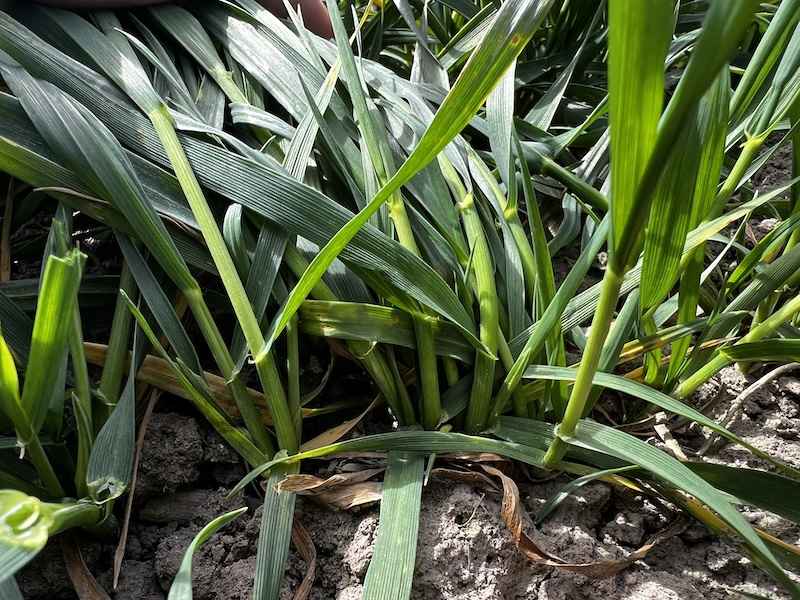 - Faza rozwojowa: Rośliny osiągnęły fazę pierwszego kolanka (BBCH 31). Pierwszy węzeł (tzw. kolanko) odsunął się od węzła krzewienia na odległość 1–1,2 cm, co jest optymalnym terminem dla wykonania zabiegu regulacji pokroju.