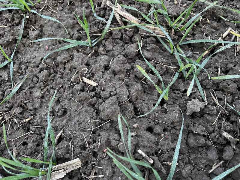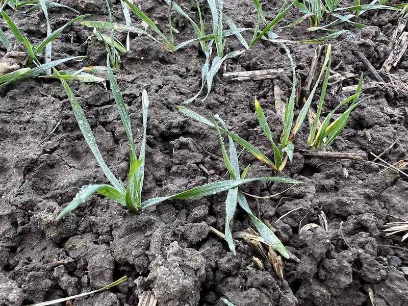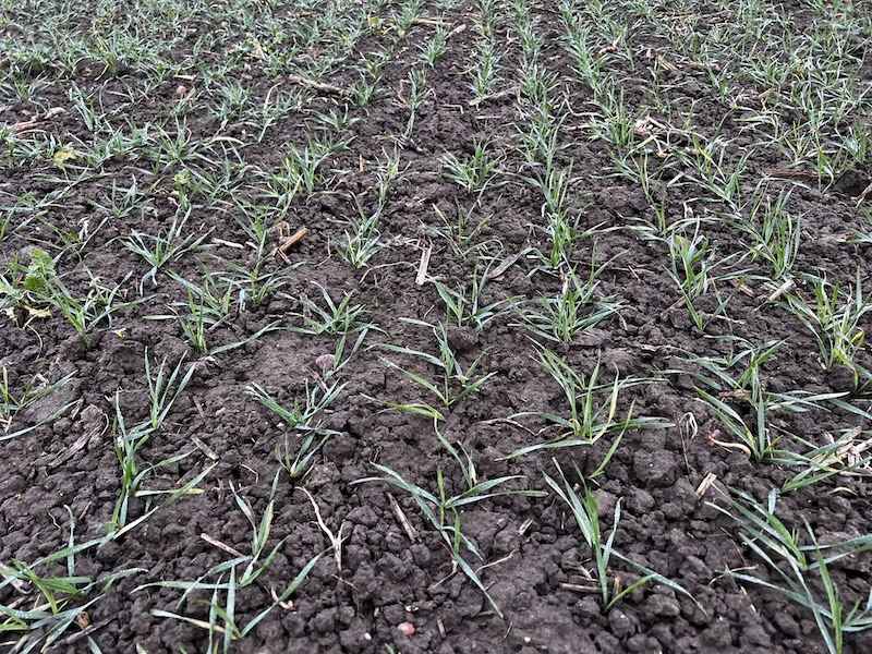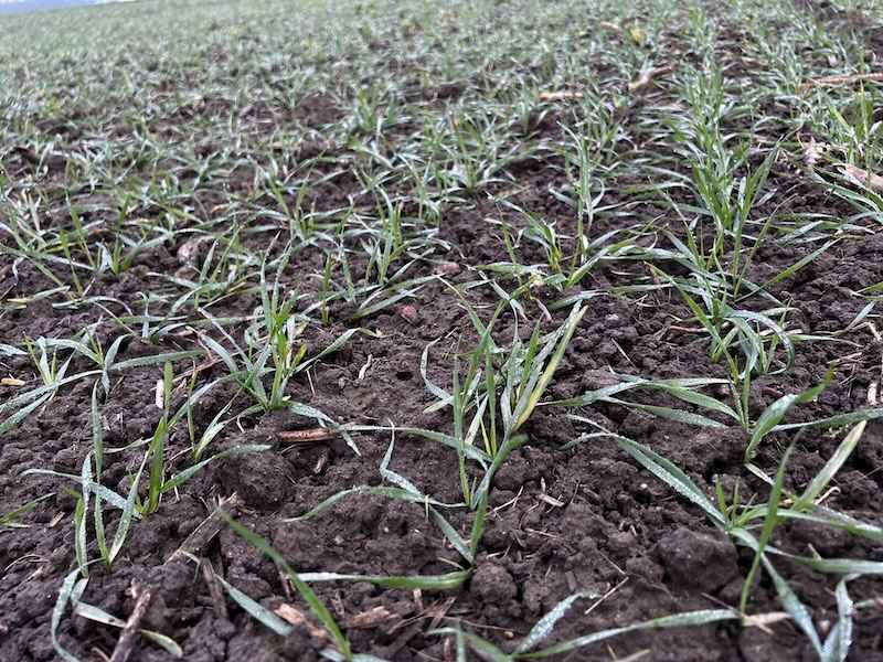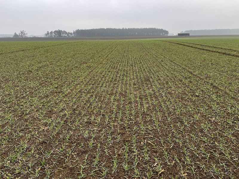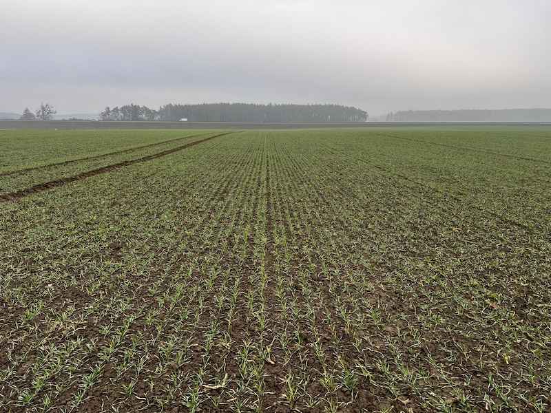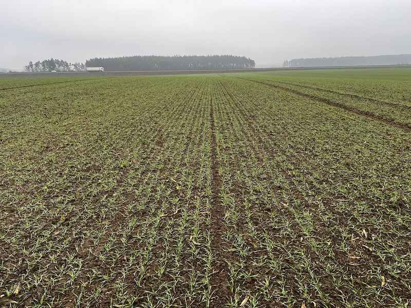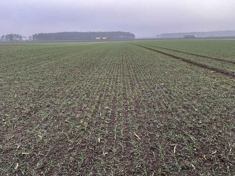 W dniu lustracji (19.12.2025) plantacja była wyrównana i dobrze rozwinięta. Pole zostało prawidłowo przygotowane do siewu w technologii bezorkowej, co przełożyło się na jednolite wschody i równomierne rozmieszczenie roślin w łanie.
