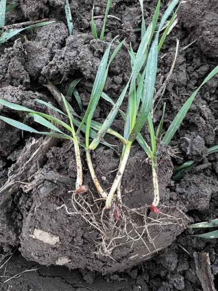Rośliny znajdowały się w głównie fazie 3 liści właściwych (BBCH 13), niektóre rozpoczynały już fazę krzewienia. Plantacja była wolna od chorób, zasiana na prawidłową głębokość (ok. 3-4 cm) oraz nie wykazywała niedoborów składników pokarmowych.