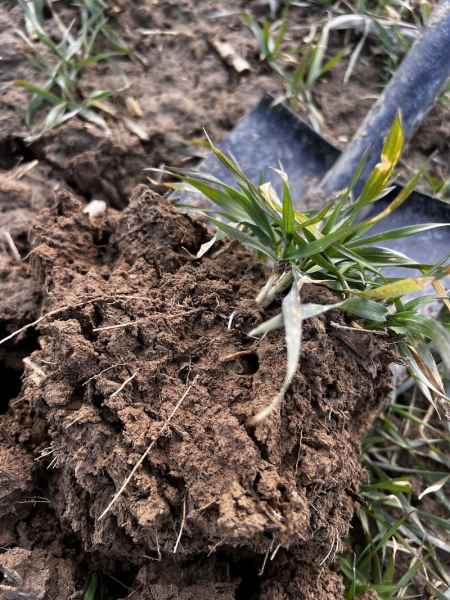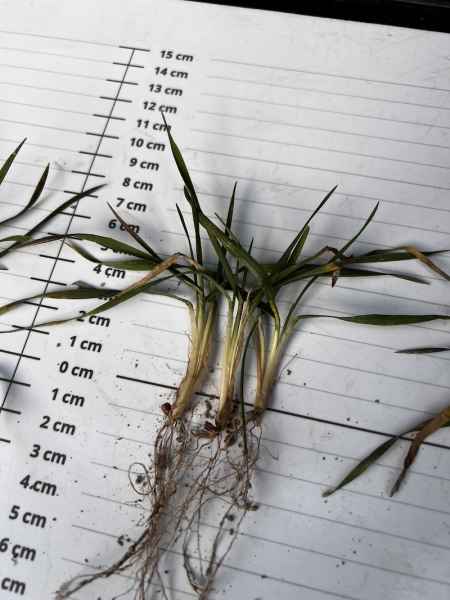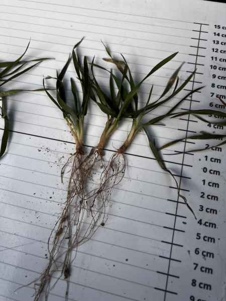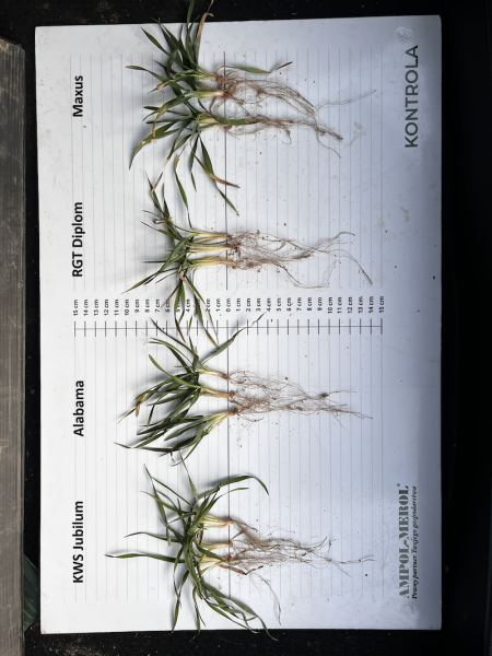 Dzięki wczesnemu siewowi i sprzyjającej jesieni, pszenica w Bychawie jest obecnie bardzo dobrze rozkrzewiona (średnio 3-4 silne pędy na roślinę). Przezimowanie oceniamy jako wzorowe. Rośliny wykazują pełną aktywność fizjologiczną – białe, młode korzenie przybyszowe świadczą o rozpoczęciu wegetacji.