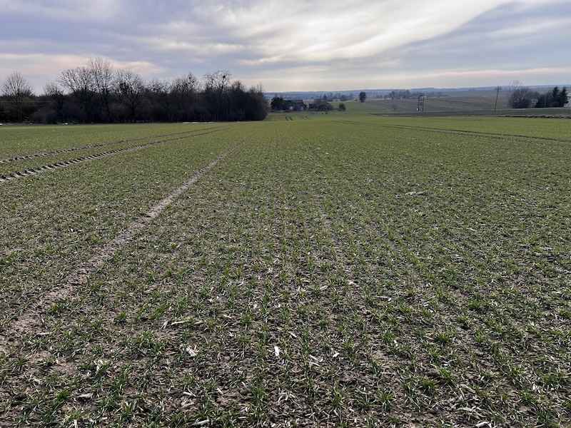 - 04.03.2026 r.: Podano pierwszą dawkę azotu w formie saletry amonowej Pulan 34,4 w ilości 250 kg/ha, co dostarczyło roślinom 86 kg N/ha.