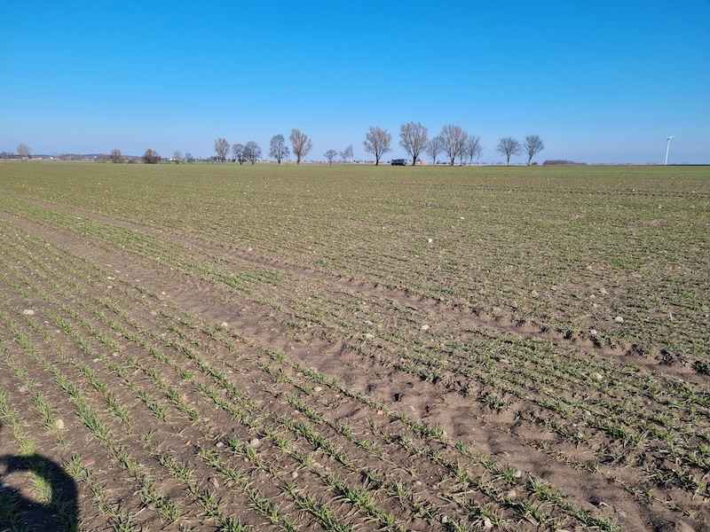 I dawka azotu zdecydowanie powinna być wysiana wcześniej ze względu na ruszenie wegetacji. Jednak zgodnie z dyrektywą azotową musieliśmy czekać na wjazd z azotem aż do 1 marca. Tak jak wyżej zostało wspomniane dawka wynosi 200 kg/ha (52 kg N/ha, 23 kg S/ha). W tym gospodarstwie, ze względu na nawożenie organiczne i dużą zawartość azotu mineralnego, dawka azotu została ograniczona.