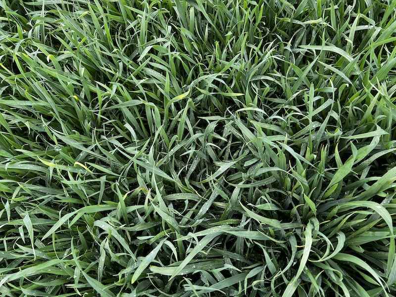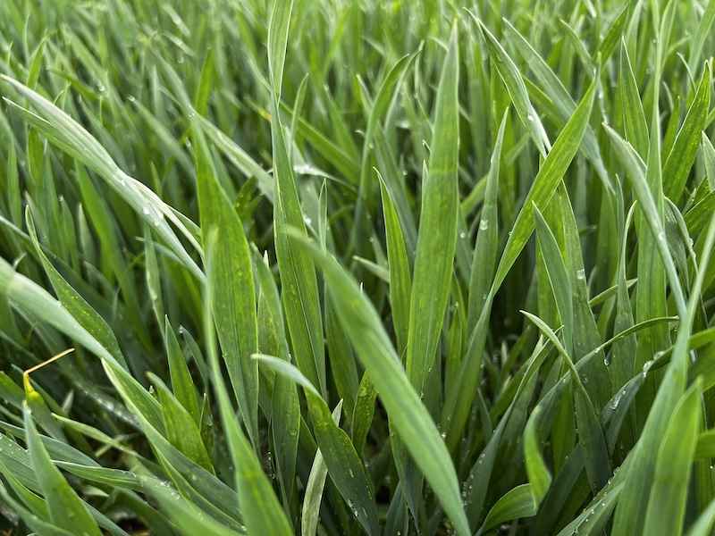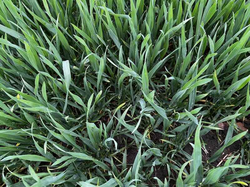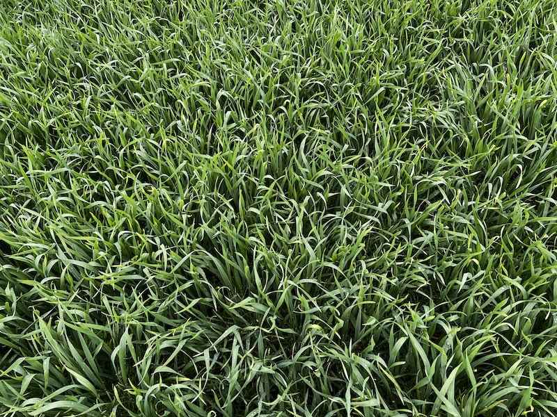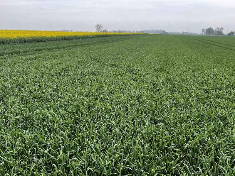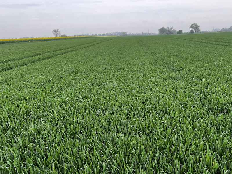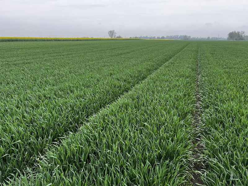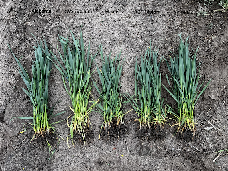 KWS Jubilum to najbardziej wyróżniająca się odmiana. Podobnie jak jesienią, także teraz jej rośliny są jaśniejsze – to ciekawostka, która jednak nie wpływa na rozwój i plonowanie. KWS Jubilum w tej, jak i w pozostałych lokalizacjach sprawia wrażenie bardzo gęstego łanu, głównie za sprawą długich, stosunkowo wąskich i „poskręcanych” liści. To jednak złudne wrażenie – obsada i liczba pędów na roślinę są porównywalne do innych odmian.