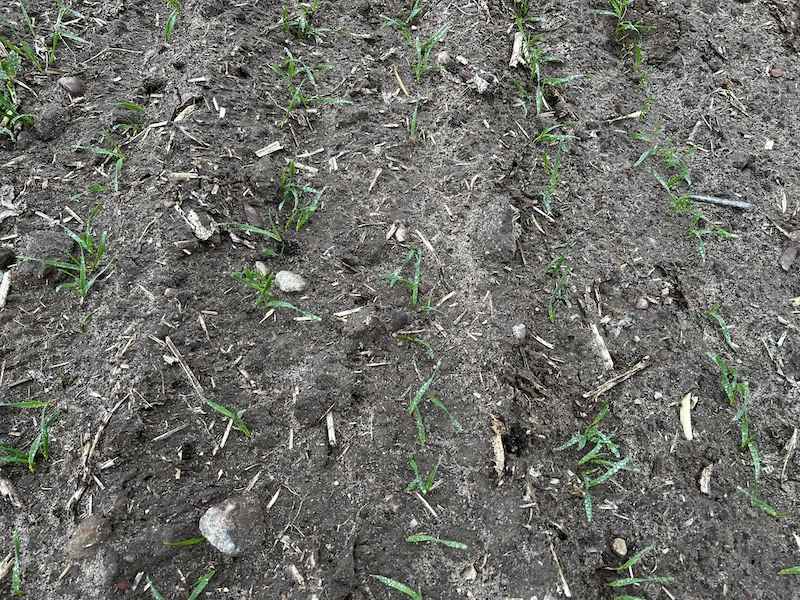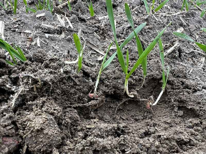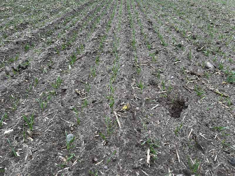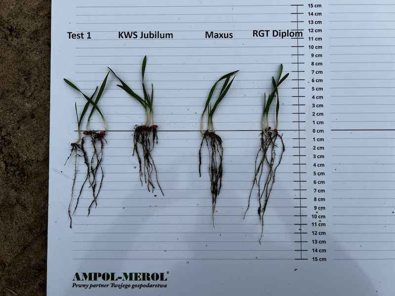 Dzięki bardzo dobrym warunkom wilgotnościowym oraz precyzyjnie wykonanej uprawie przedsiewnej, wschody można uznać za niemal stuprocentowe. Również głębokość siewu – utrzymana na poziomie około 3 cm – świadczy o staranności wykonanych prac.