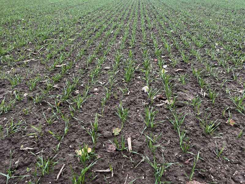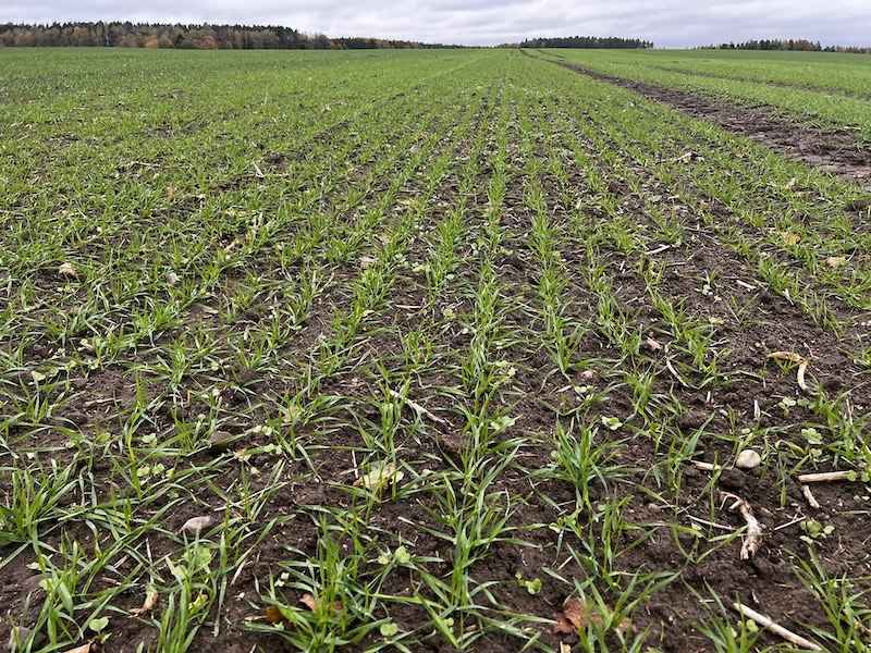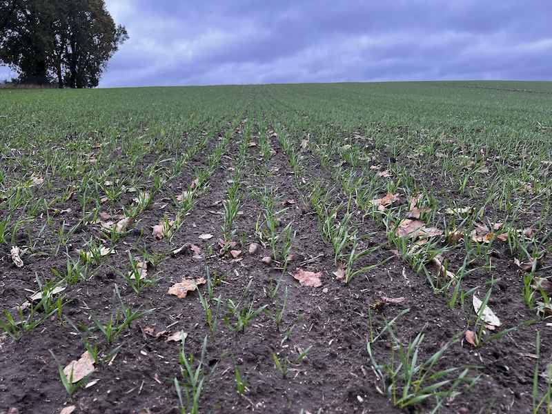 Na naszej Demo Farmie będziemy przyglądać się czterem odmianom pszenicy ozimej: Maxus, RGT Diplom, Alabama oraz KWS Jubilum. Wszystkie wysiano w obsadzie 300 szt./m² w technologii bezorkowej.