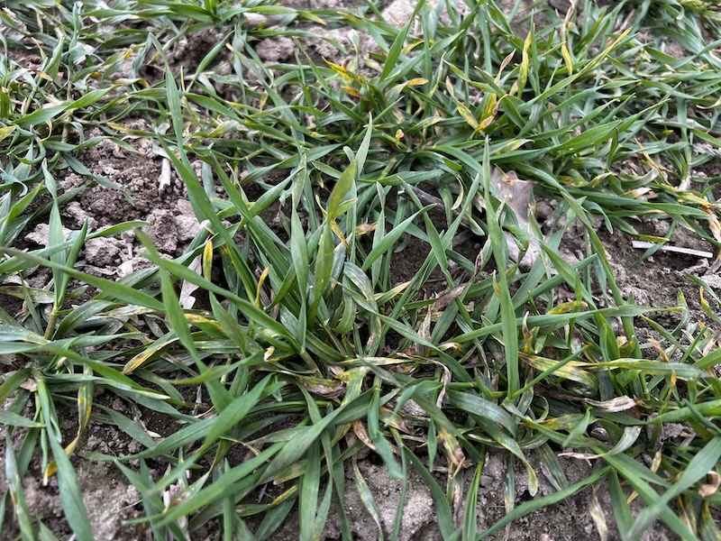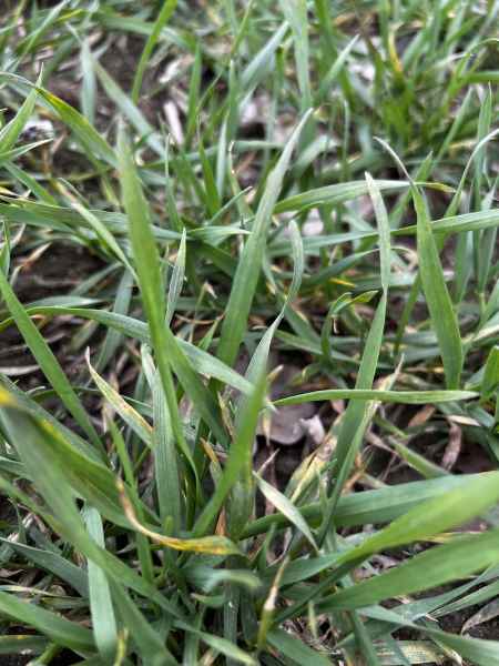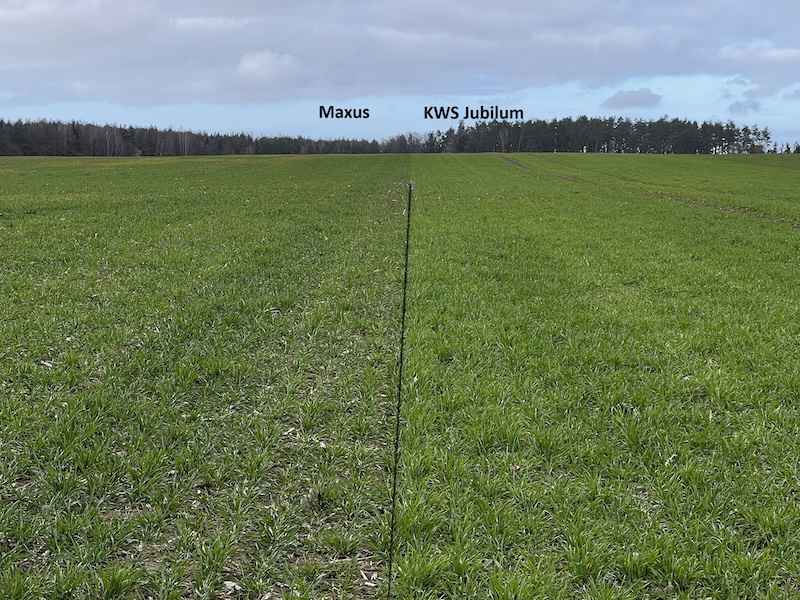 Zarówno pszenice (RGT Diplom, Maxus, KWS Jubilum, Alabama) jak i pszenżyta (Misterio i Tadeus) wykazują doskonałą kondycję i brak uszkodzeń pozimowych.