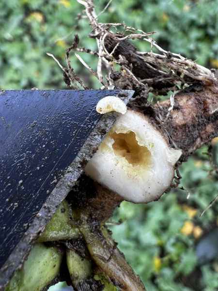 Na jednej z pobranych roślin zaobserwowaliśmy uszkodzenia spowodowane przez chowacza galasówka – presja tego szkodnika była jednak marginalna i nie wymagała interwencji.
