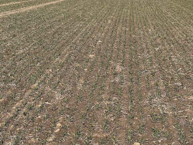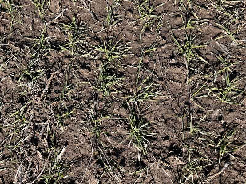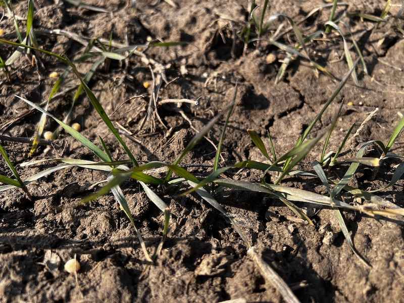 Pod kątem sanitarnym łan w Rogalinie prezentuje się bardzo dobrze. Dzięki lekko opóźnionemu terminowi siewu, rośliny uniknęły jesiennych infekcji – zarówno podstawa źdźbła, jak i blaszki liściowe są wolne od objawów chorób grzybowych.