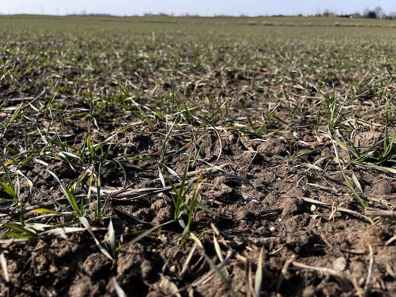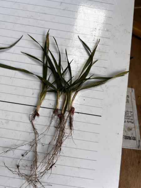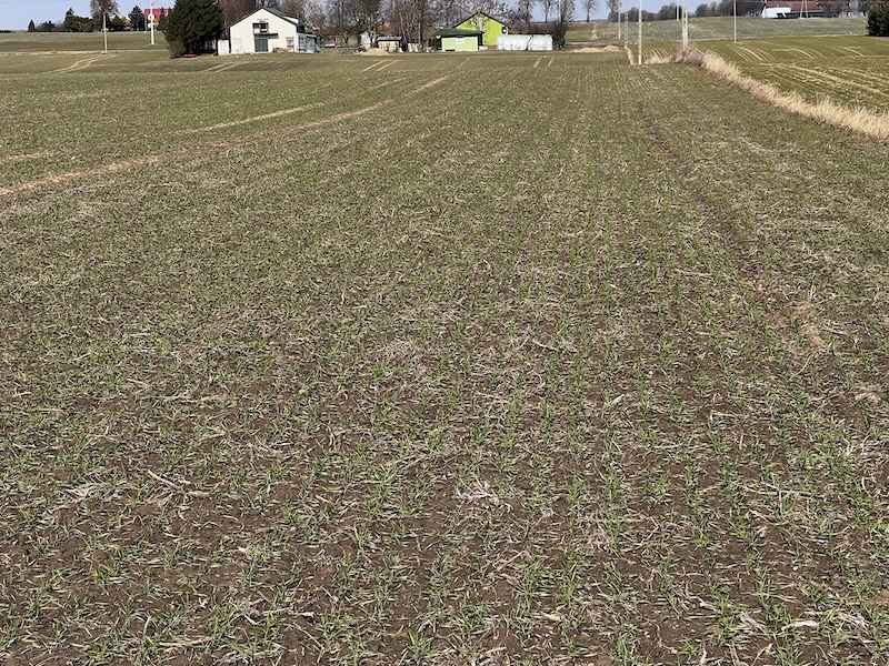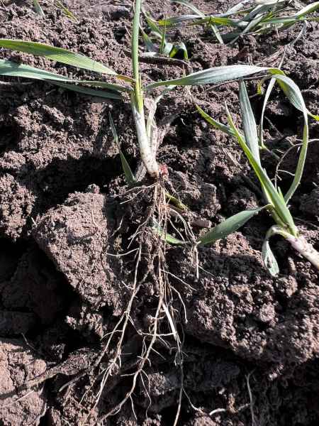Lustracja polowa przeprowadzona 11 marca potwierdziła bardzo dobre przezimowanie wszystkich odmian. Rośliny wykazują wyraźne oznaki wznowienia procesów życiowych – z węzła krzewienia wybijają świeże, białe korzenie przybyszowe, co świadczy o aktywnej regeneracji systemu korzeniowego i gotowości do pobierania składników pokarmowych. Nie stwierdziliśmy żadnych istotnych ubytków w obsadzie.