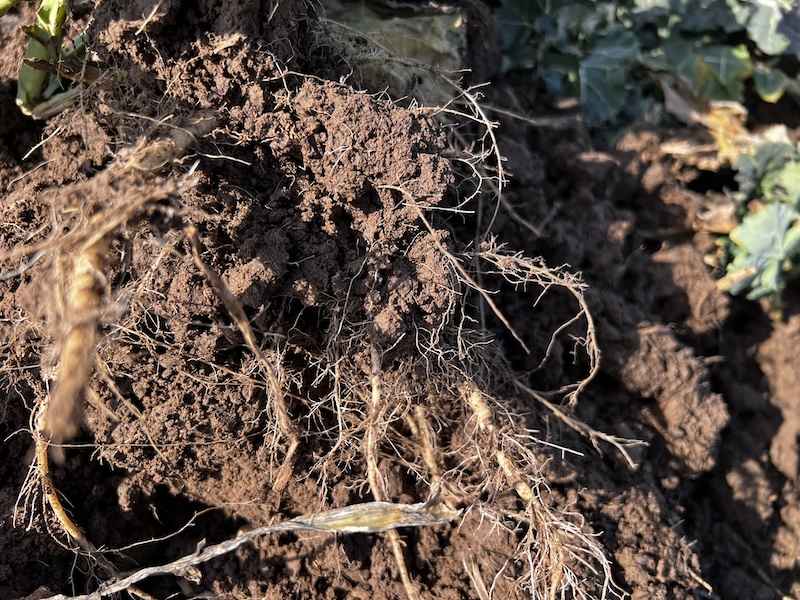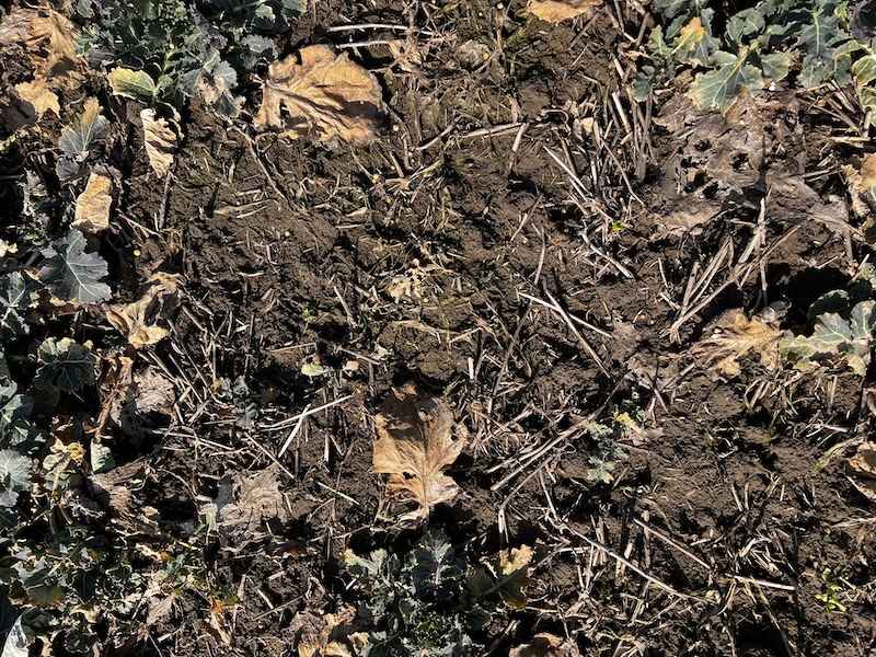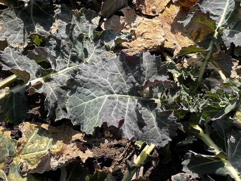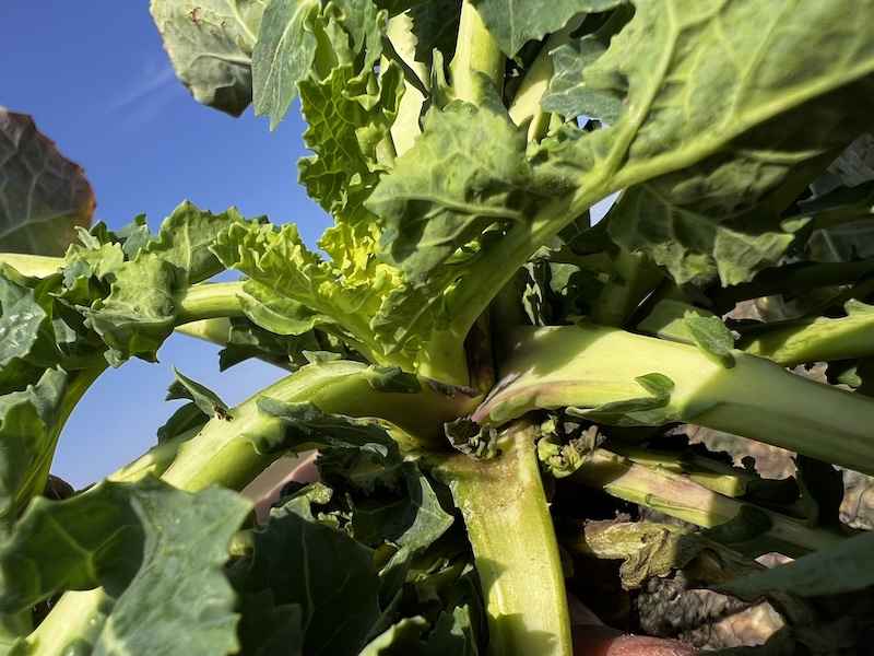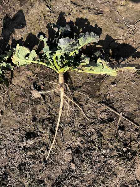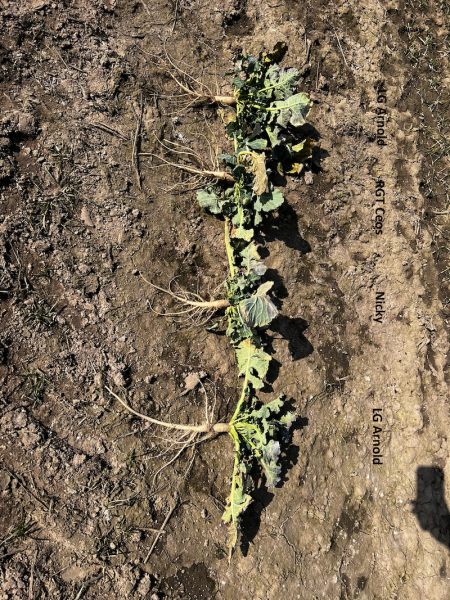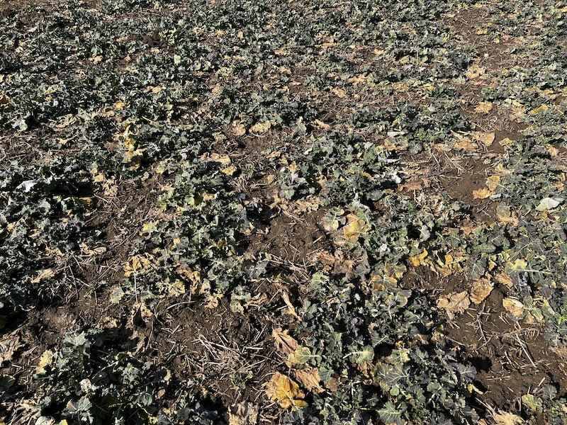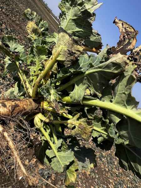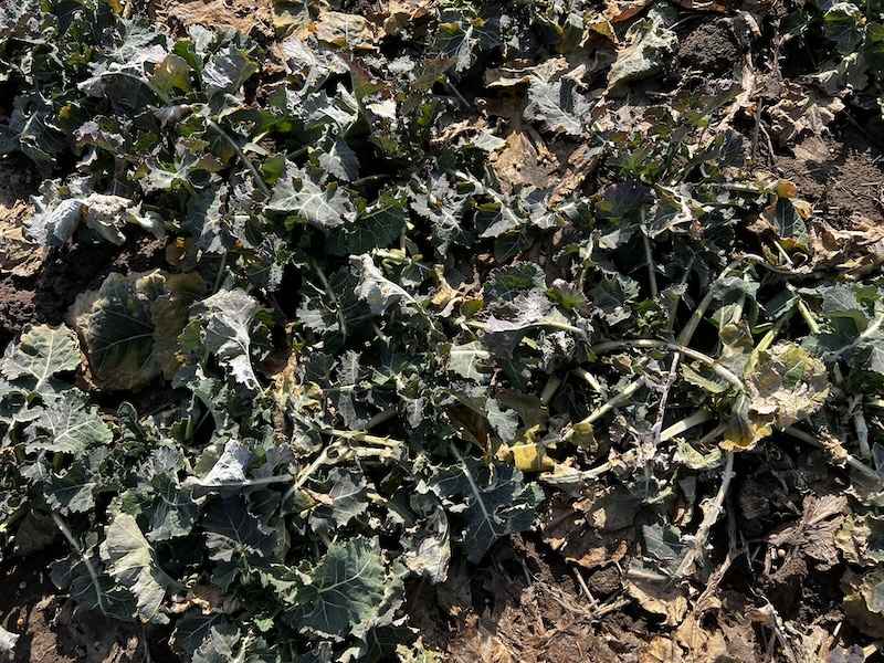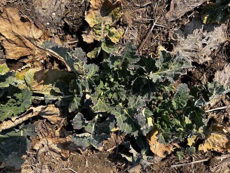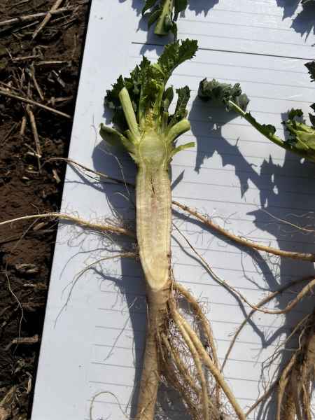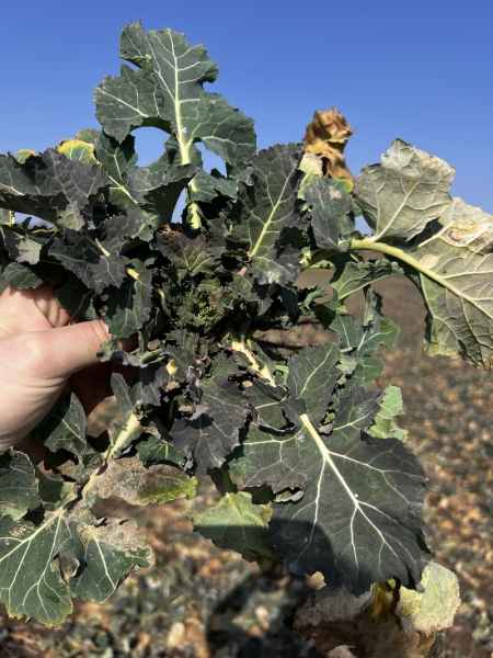 Pod kątem fitosanitarnym plantacja w Rogalinie jest niemal wzorcowa. Nie zaobserwowaliśmy żadnych objawów chorób grzybowych na liściach ani szyjce korzeniowej. Pole jest również całkowicie wolne od obecności chwastów, co potwierdza wysoką skuteczność jesiennego odchwaszczania.