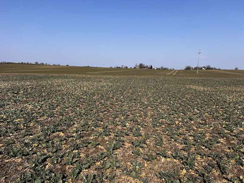 Lokalizacja w Rogalinie to obecnie jedna z najsilniejszych plantacji rzepaku w naszym zestawieniu. Optymalnie poprowadzone zabiegi jesienne oraz sprzyjające warunki sprawiły, że rzepak wchodzi w fazę wiosennej regeneracji z ogromnym potencjałem plonotwórczym.