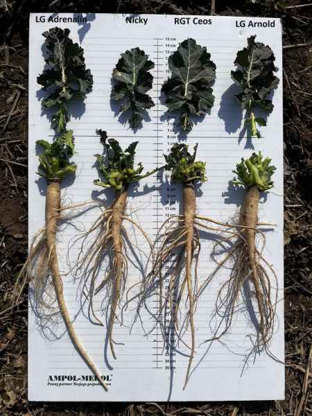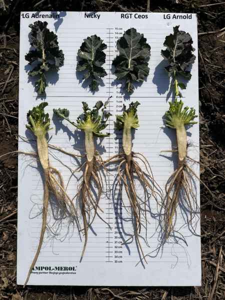 W Rogalinie wszystkie cztery odmiany (Nicky, RGT Ceos, LG Arnold, LG Adrenalin) prezentują bardzo wyrównany, wysoki poziom zaawansowania. W dniu lustracji rośliny miały wytworzonych 14-16 liści, przy czym w ich kątach widniały bardzo silnie rozwinięte zawiązki pędów bocznych.Przy tak optymalnym rozmieszczeniu roślin i silnych rozetach, na ten moment trudno wyłonić lidera – każda z odmian wykorzystuje potencjał stanowiska w sposób maksymalny. Do szczegółowej oceny i porównania odmian przystąpimy przy okazji kolejnych lustracji.