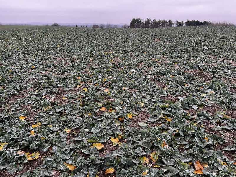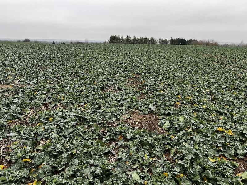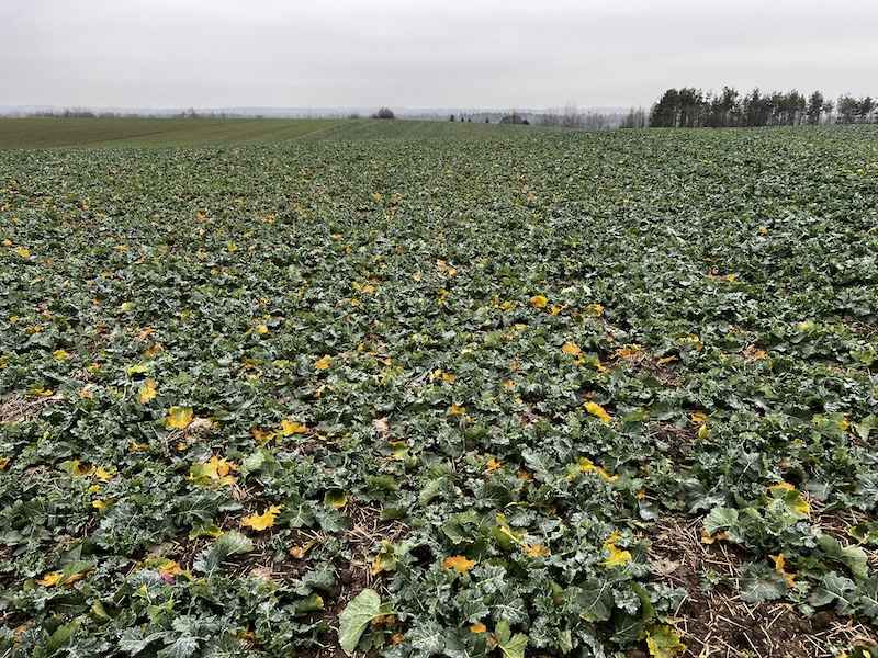 W dniu lustracji zastaliśmy bardzo wyrównaną plantację, doskonale przygotowaną do okresu zimowania. Pomimo silnie pofałdowanego terenu, niezależnie od położenia na polu rośliny wzeszły w pełnej obsadzie i znajdowały się w tej samej fazie rozwojowej. Regulacja łanu przyniosła oczekiwane efekty – szyjki korzeniowe były całkowicie schowane pod powierzchnią gleby, a stożki wzrostu nisko usytuowane nad jej powierzchnią.