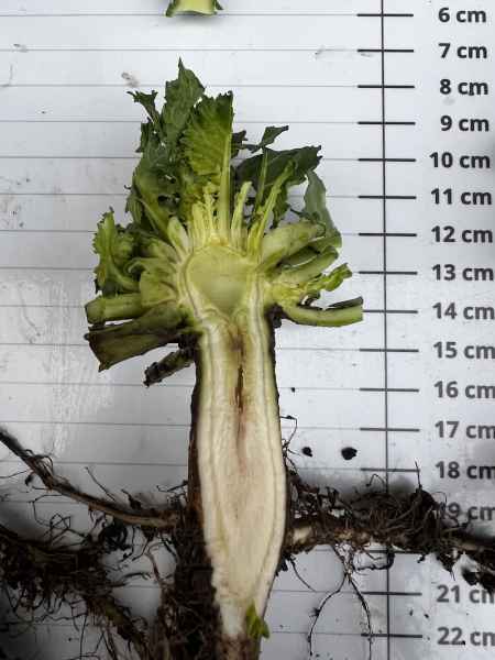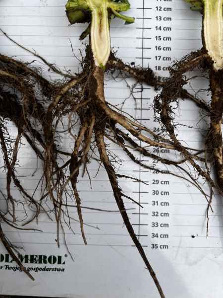 Bogate nawożenie przedsiewne przełożyło się na bardzo dobre odżywienie roślin. Jedynym elementem, który – podobnie jak w wielu innych lokalizacjach w kraju – zwracał uwagę, były objawy niedoboru boru widoczne po wykonaniu przekrojów wzdłużnych szyjki korzeniowej, co wiążemy z warunkami pogodowymi ograniczającymi pobieranie tego pierwiastka z gleby.