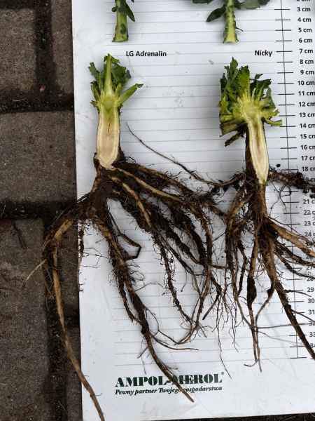 Odmiana populacyjna Nicky zgodnie z charakterystyką tej grupy odmian (odmiana populacyjna) posiadała nieco cieńszą szyjkę korzeniową w porównaniu z hybrydami, co jest jednym z powodów, dla których odmiany populacyjne zaleca się wysiewać w wyższej obsadzie.