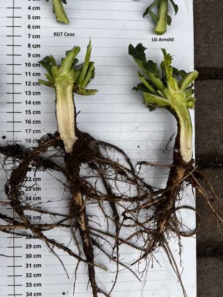 LG Arnold wytworzył podobną liczbę liści w rozecie jak RGT Ceos, jednak w tej lokalizacji charakteryzował się najmniejszą średnicą szyjki korzeniowej spośród porównywanych mieszańców.